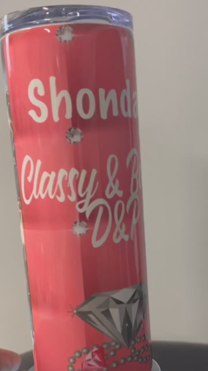 Custom 20 Oz stainless steel tumbler with name. Straw included.